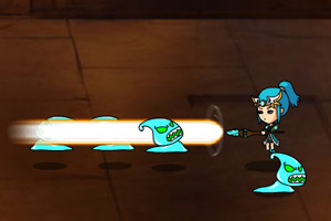 操作说明:玩家1WASD移动J攻击K跳跃JK大招SWJ绝招玩家2↑↓←→移动1攻击2跳跃12大招↑↓1绝招提示:游戏中大招没有限制,可无限使用。杀死怪物有一定机率掉落饼干,饼干可补充生命或增加积分。