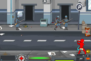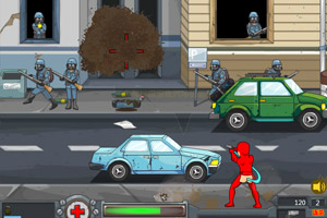 操作说明:鼠标左键瞄准射击,使用 AD/←→移动,连按 AD/←→两次闪避,W/↑跳跃,S/↓蹲下且保持按住一段时间可回复血量。