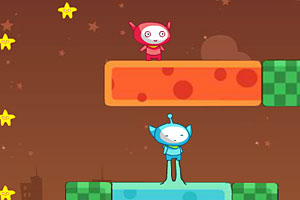 游戏介绍:红宝和蓝宝是两个从小青梅竹马两小无猜的外星人,这次他们外出旅行,来到了别的星球。不小心分开了,而且两个人分别沾染上了这个星球的能量,使得红宝只能在红色的土地上走,蓝宝只能自蓝色土地上走。但是这是阻止不了他们在一起的,只要他们吃掉星球上的能量体并且在粉色的土地上,她们就又能在一起了。 类型:冒险类标签:双人合作外星人大小:2.45MB英文名:Alien Baby Home