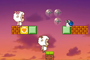 操作说明:喜羊羊:AD键控制移动,W跳跃(可二段跳),S丢武器;美羊羊:←→键控制移动,↑ 跳跃(可二段跳),↓ 丢武器;