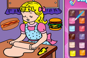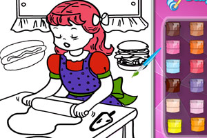 游戏介绍:可爱的女孩今天在跟妈妈学习做菜,真是一个乖巧的女孩呢,我们一起为这个女孩填上美丽的色彩,让画面变得的更加生动吧!